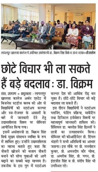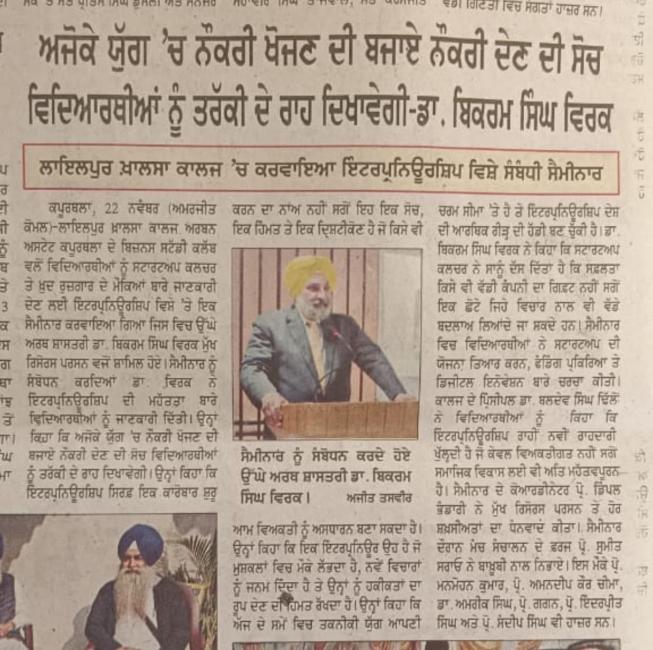 ਇੰਟਰਪ੍ਰਨਿਊਰਸ਼ਿਪ ਵਿਸ਼ੇ ’ਤੇ ਸੈਮੀਨਾਰ ਆਯੋਜਿਤ|
