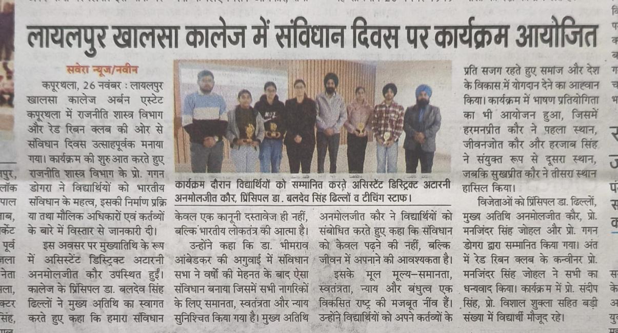 ਸੰਵਿਧਾਨ ਦਿਵਸ ਨੂੰ ਸਮਰਪਿਤ ਕਰਾਇਆ ਸਮਾਗਮ