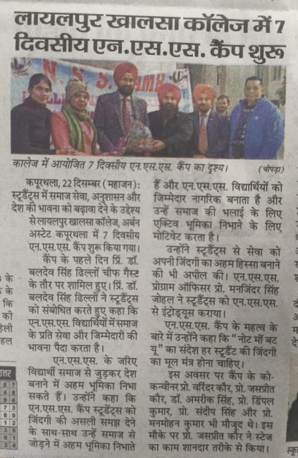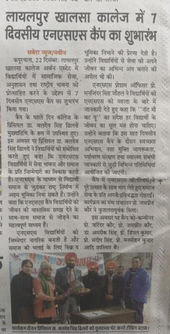 ਐਨ.ਐੱਸ.ਐੱਸ. ਦੇ ਸੱਤ ਰੋਜ਼ਾ ਕੈਂਪ ਦੀ ਸ਼ੁਰੂਆਤ