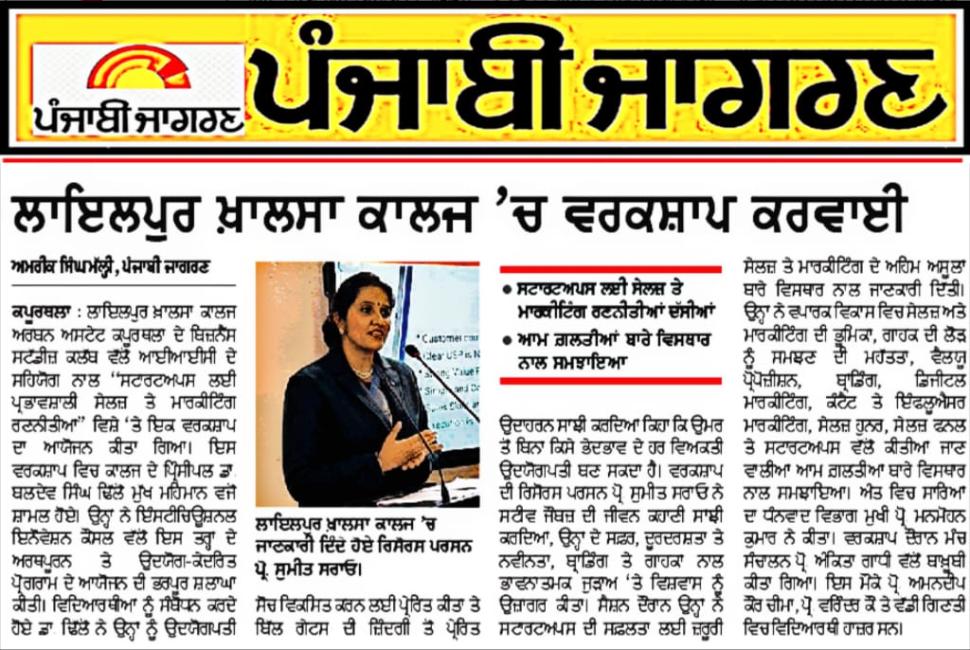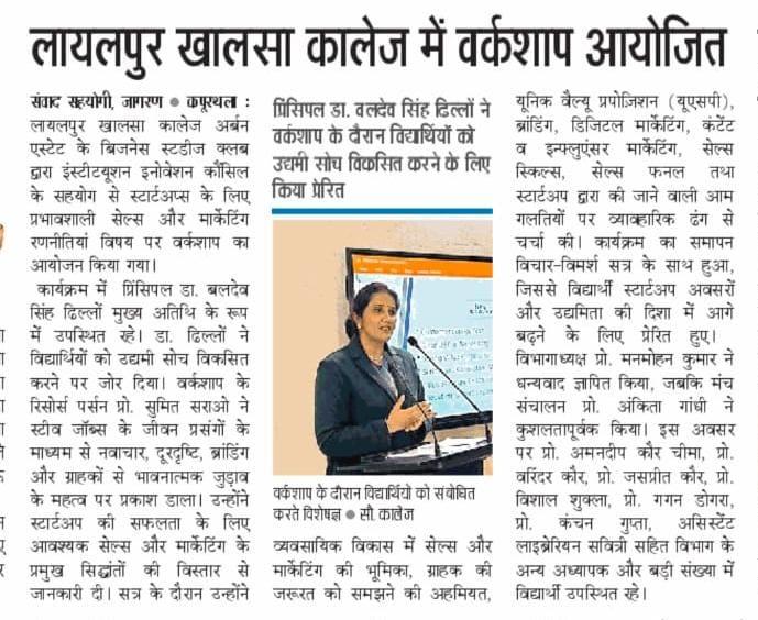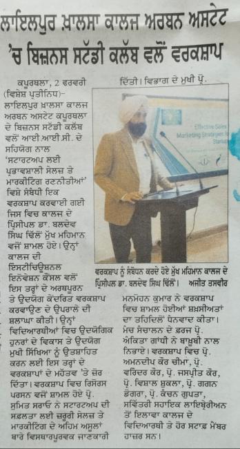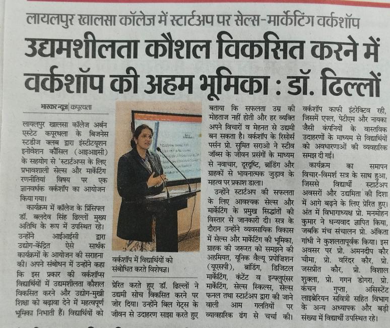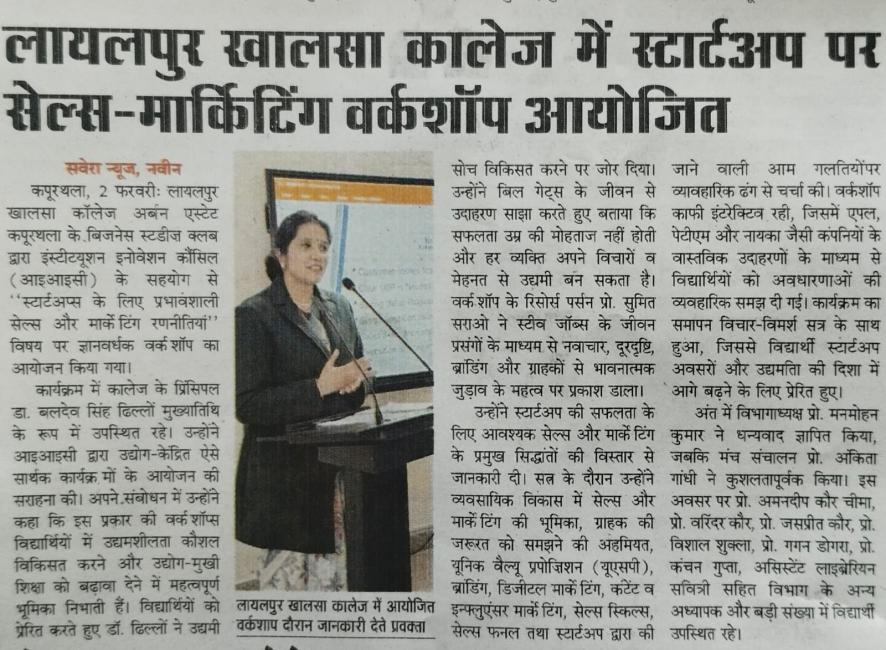 ਬਿਜ਼ਨਸ ਸਟੱਡੀਜ਼ ਕਲੱਬ ਵੱਲੋਂ IIC ਦੇ ਸਹਿਯੋਗ ਨਾਲ ਵਰਕਸ਼ਾਪ ਦਾ ਆਯੋਜਨ