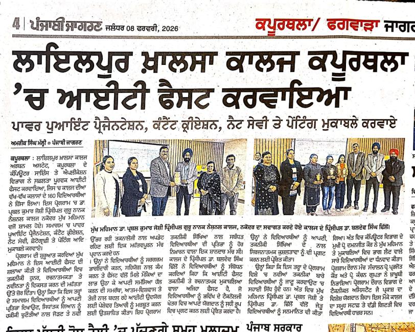 Organized by: Lyallpur Khalsa College, Kapurthala in collaboration with Youth Club of the college
