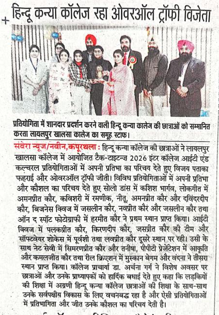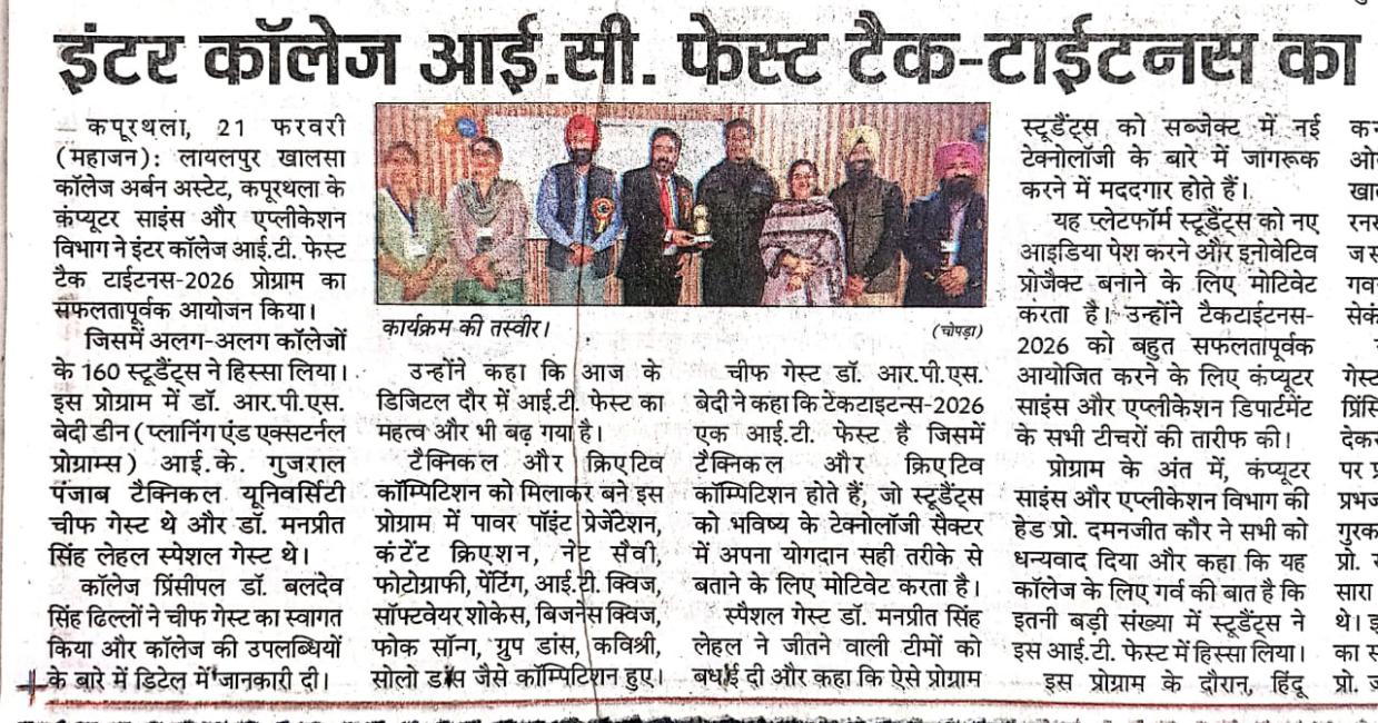 ਕੰਪਿਊਟਰ ਸਾਇੰਸ ਅਤੇ ਐਪਲੀਕੇਸ਼ਨ ਵਿਭਾਗ ਨੇ ਕਰਾਇਆ ਇੰਟਰ ਕਾਲਜ ਆਈ ਟੀ ਫੈਸਟ TechTitans-2026