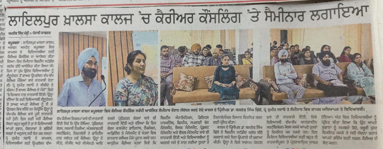 ਰੋਜ਼ਗਾਰ ਅਤੇ ਪਲੇਸਮੈਂਟ ਵਿਸ਼ੇ ਤੇ ਕਰਾਇਆ ਸੈਮੀਨਾਰ