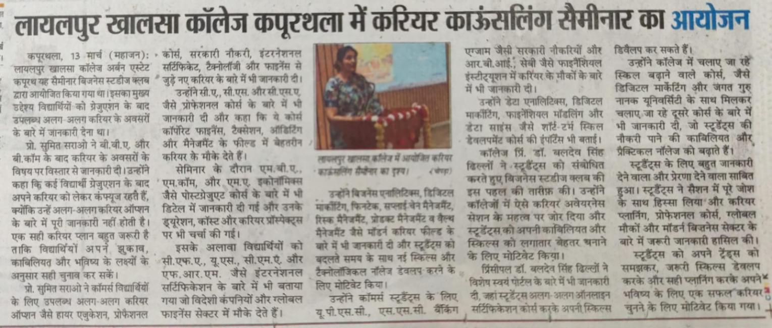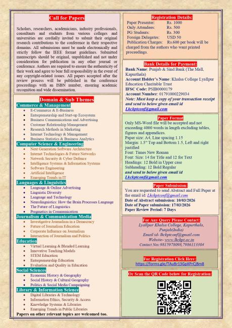 Organized by: LYALLPUR KHALSA COLLEGE, KAPURTHALA