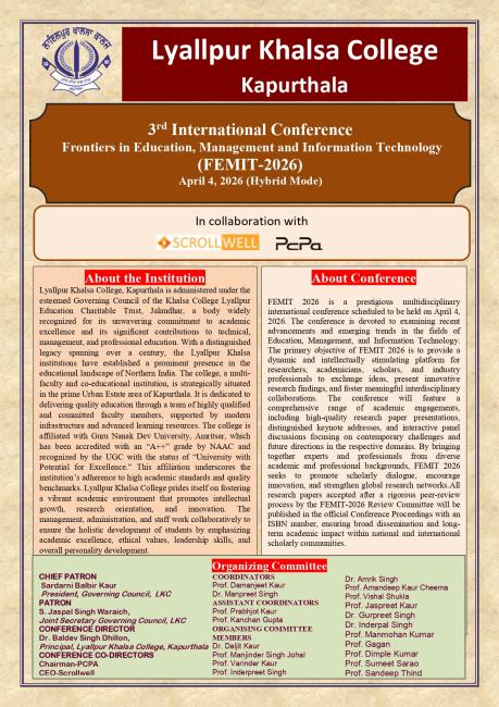 Organized by: Lyallpur Khalsa College, Kapurthala