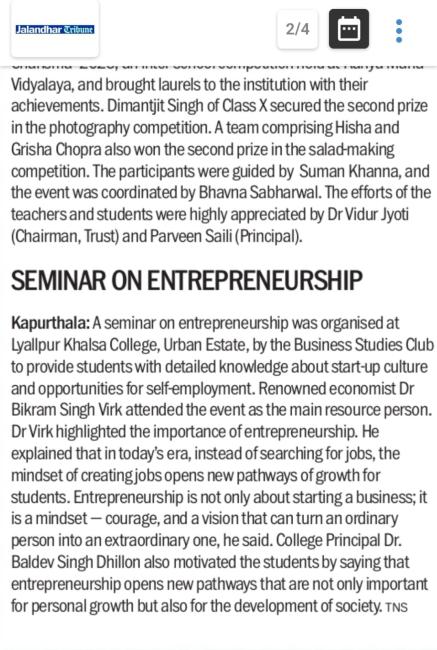 ਇੰਟਰਪ੍ਰਨਿਊਰਸ਼ਿਪ ਵਿਸ਼ੇ ’ਤੇ ਸੈਮੀਨਾਰ ਆਯੋਜਿਤ|