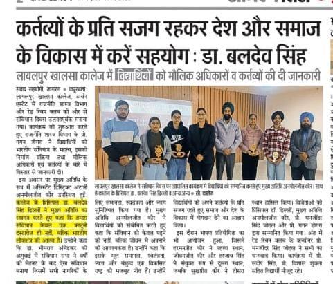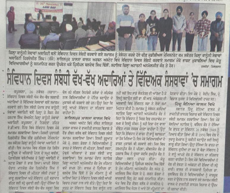 ਸੰਵਿਧਾਨ ਦਿਵਸ ਨੂੰ ਸਮਰਪਿਤ ਕਰਾਇਆ ਸਮਾਗਮ