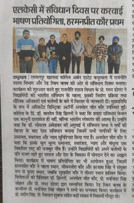 Organized by: Lyallpur Khalsa College, Kapurthala in collaboration with Youth Welfare Department, Kapurthala